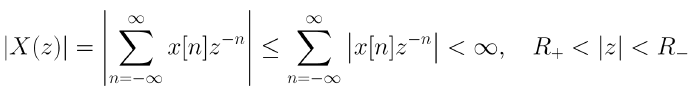 x[n]의 z-변환이 R+ < |z| < R- 의 수렴영역(ROC)에 대해 수렴한다고 가정해보자.