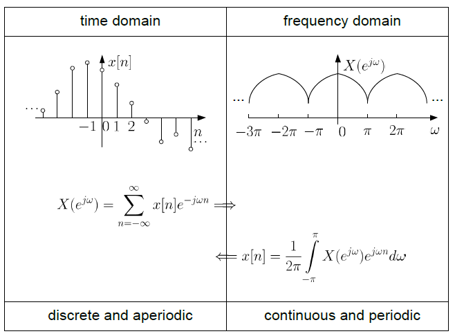 x[n]과 X(e^jw)의 DTFT는 아래의 식에서 도출된다.