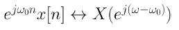 시간 영역에서 x[n]에 X(e^jw)를 곱하는 것은 주파수 영역에서 w0의 이동하는 것과 동일하다.