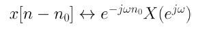 x[n]에서 n0을 이동하면 X(e^jw)에서 e^-jwn0이 곱해진다.