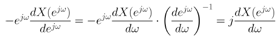 X(e^jw)를 w에 대해 미분하는 것은 x[n]에 n을 곱하는 것과 동일하다.