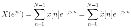 유한 기간 수열 x[n]의 X(e^jw) 또는 DTFT 샘플은 x[n]의 주기적 확장인 무한 기간 주기 수열 x̄[n]의 DFS를 사용하여 계산할 수 있다.