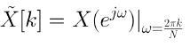 즉, x̄[k]는 2π/N의 균일한 주파수 간격으로 0 < w < 2π 범위의 개별 주파수에서 샘플링된 X(e^jw)와 같다.