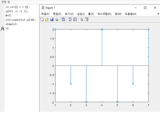 N=7일 때 선형 컨볼루션과 순환 컨볼루션이 같아진다.