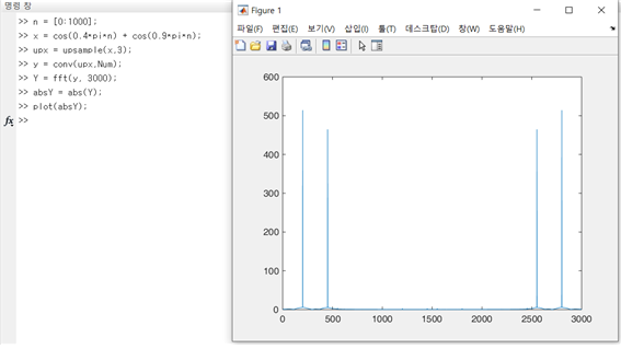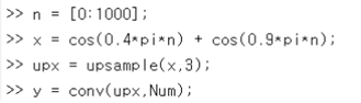 (2) x[n]을 샘플링 주파수를 3000Hz(3배)로 변경된 신호 y[n] 만들어내시오.