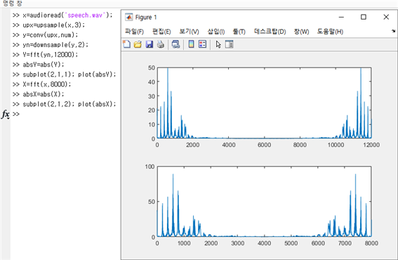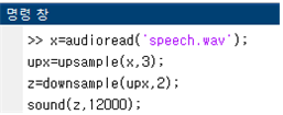 1. 음성데이타 (speech.wav,샘플링 주파수=8,000Hz)를 읽어 온 후 샘플링 주파수를 12,000Hz로 변경하시오.