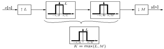 오디오 신호나 통신 신호 처리에 있어 처음 샘플링된 신호는 다른 샘플링 주파수로 변환하는 과정이 필요하다. 샘플링 rate 변환하는 방법은 아래 그림과 같이 이루어질 수 있다. 샘플링 rate를 높이기 위해 입력 신호는 업 샘플링 후 Low pass filter를 통과한다. 샘플링 rate를 낮추기 위해 입력 신호는 Low pass filter 통과 호 다운 샘플링을 한다. 다운 샘플링하여 분수(L/M) 샘플링 rate 변환을 이룰 수 있다. 분수(L/M) 비율 샘플링 변환하기 위해 신호는 업 샘플링 후 Low pass filter를 통과한 후 다운 샘플링하여 분수 비율 샘플링 rate 변환한다.