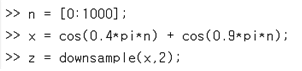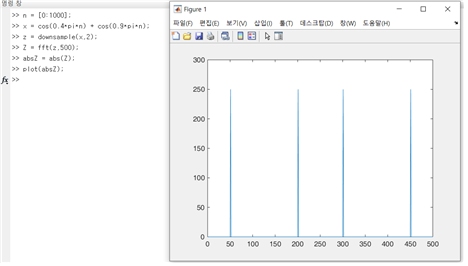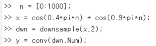(5) 샘플링 변환 과정에서 LPF를 사용하지 않고 Down-sampling하여 z[n] 신호를 만들어내시오.