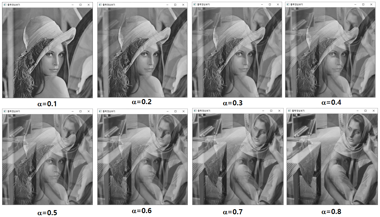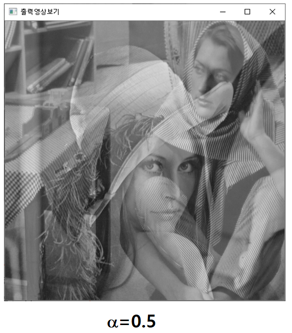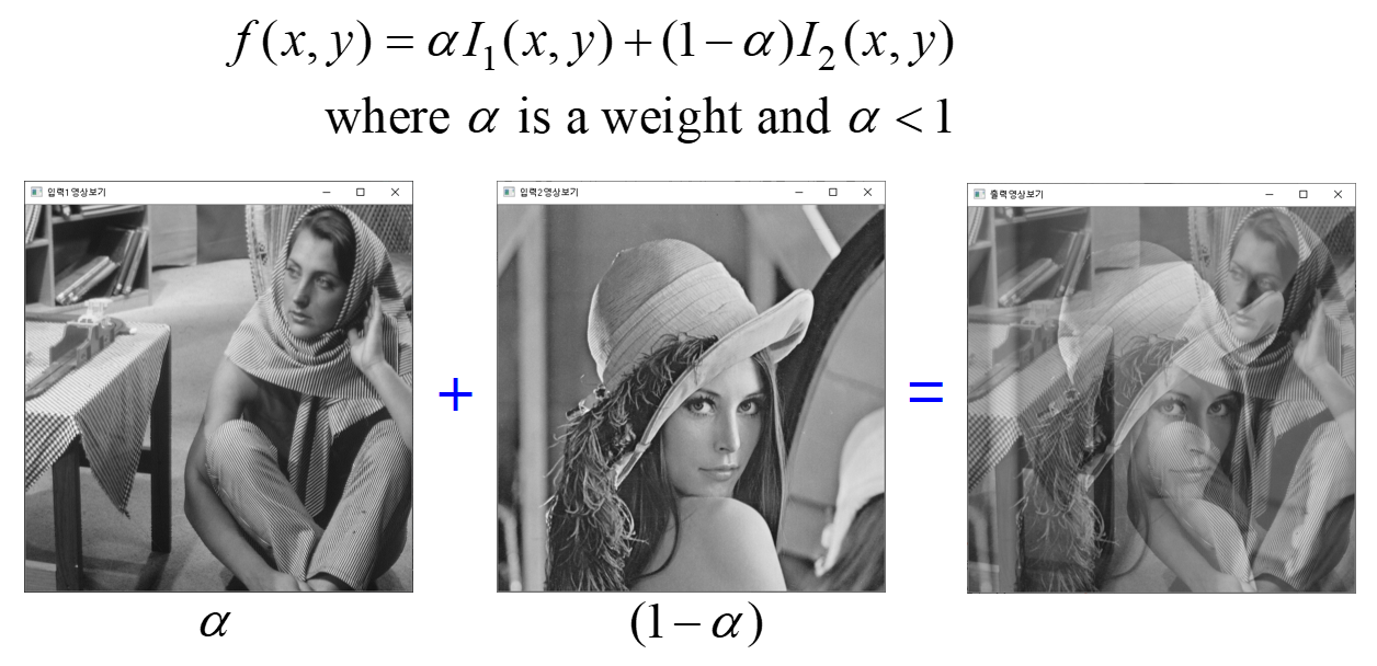 - 두 개의 영상을 적절한 가중치를 주어 합하는 처리