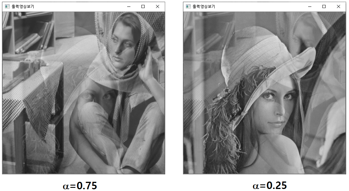 - 두 개의 영상을 적절한 가중치를 주어 합하는 처리