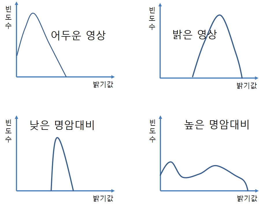 - ‘정규화된 누적히스토그램’를 함수로 하여 스트레칭하는 것을 히스토그램 평활화라고 함