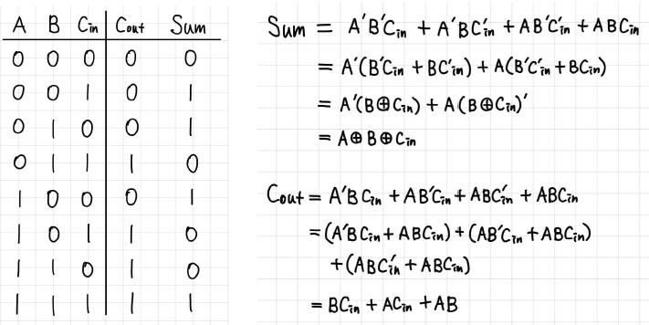 또한 Truth Table을 토대로 Boolean Equation을 작성하여 결과값을 식으로 단순화하여 파악할 수 있다.