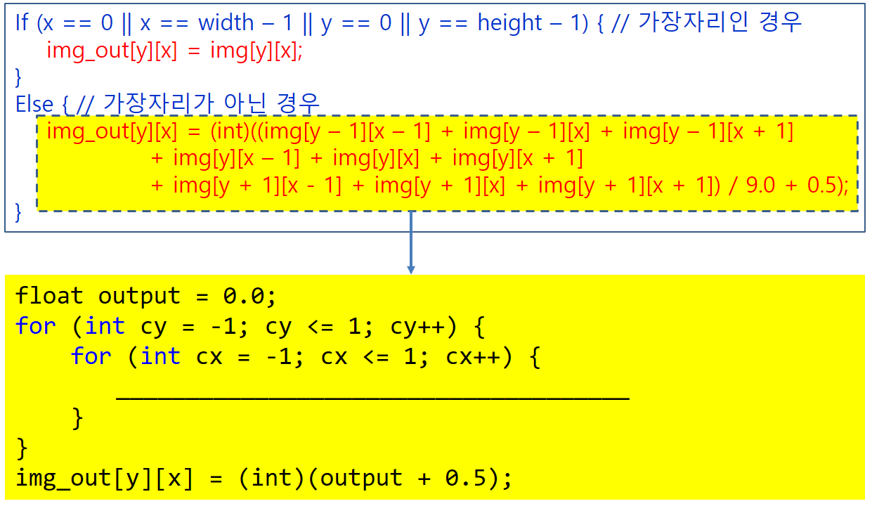 - 프로그래밍 : 마스크를 이용한 3x3 평균필터