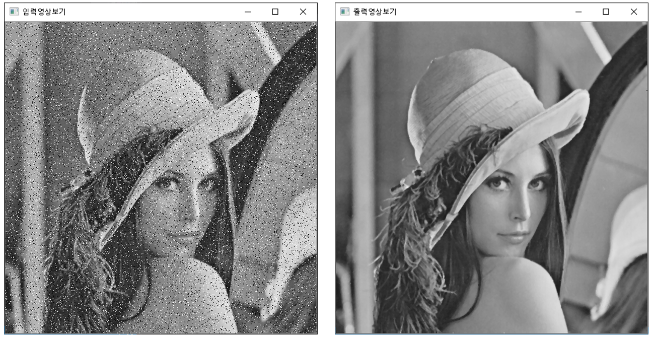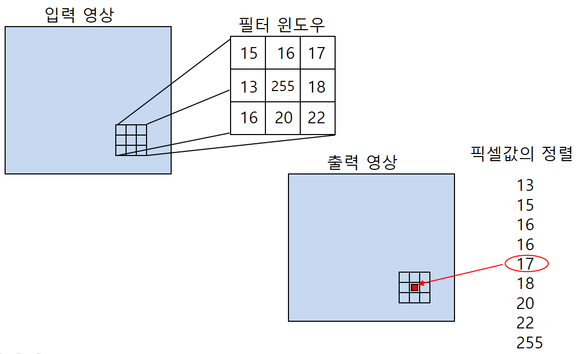 - BubbleSort() 함수를 사용하기 위해서 마스크 내에 있는 픽셀값을 1차원 배열로 만들어 입력시켜야 함