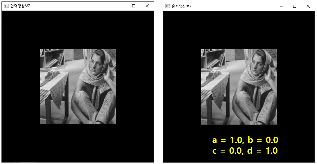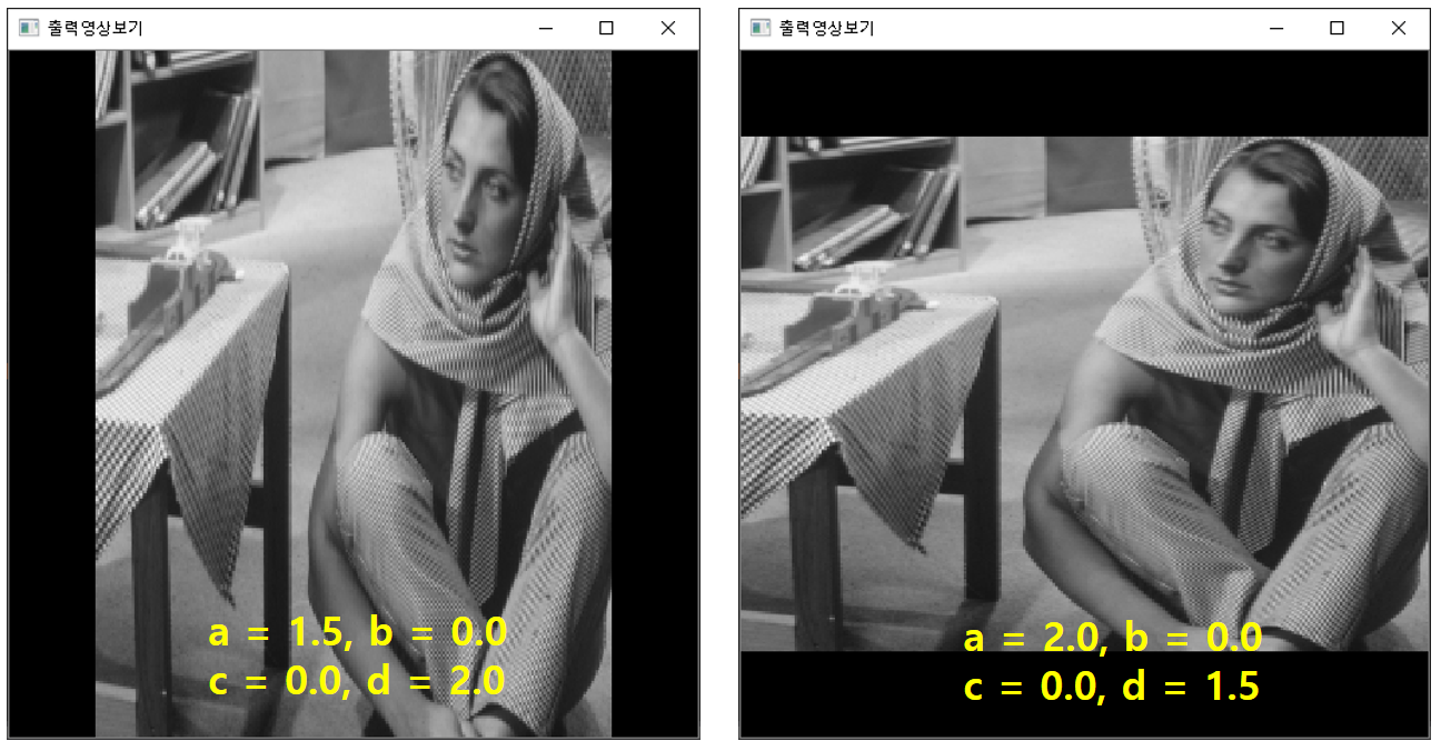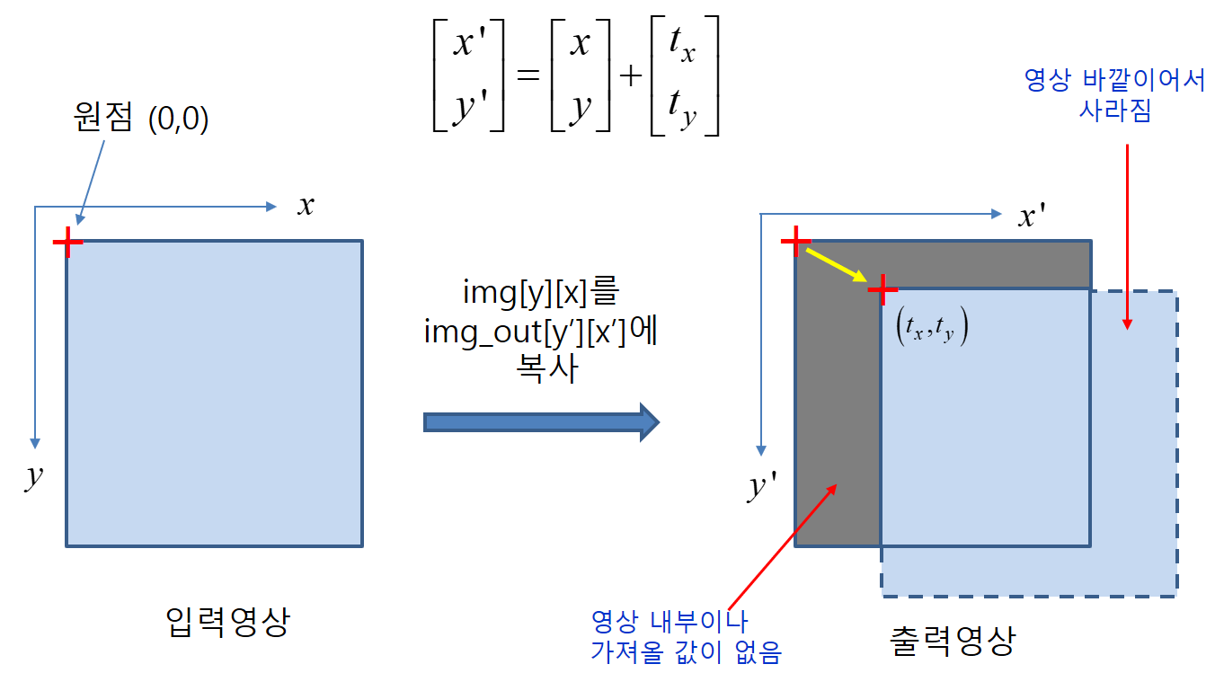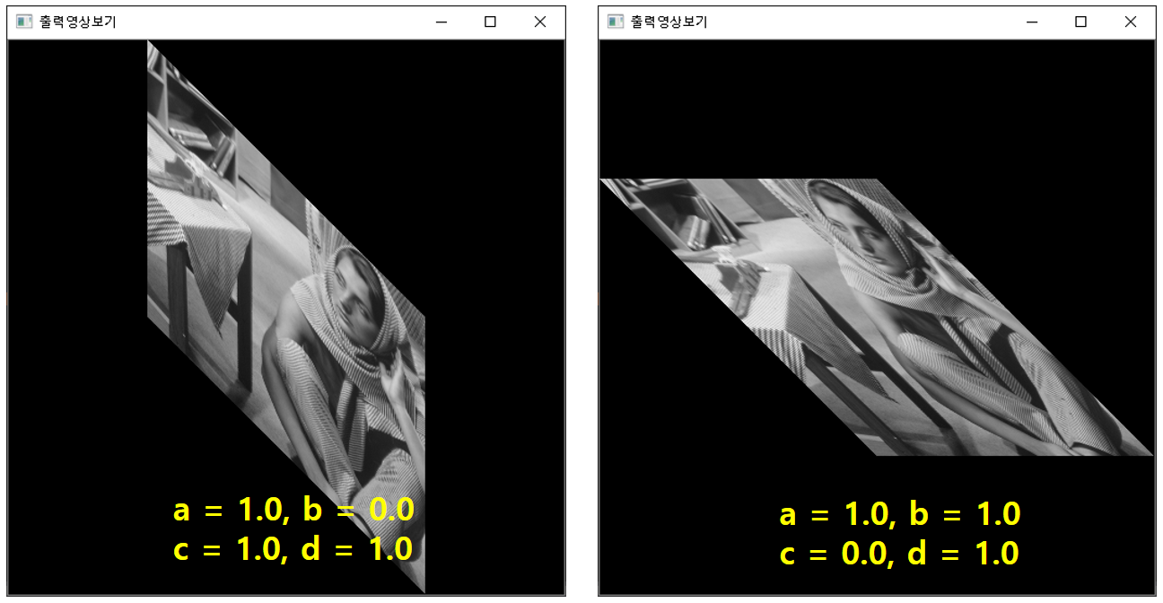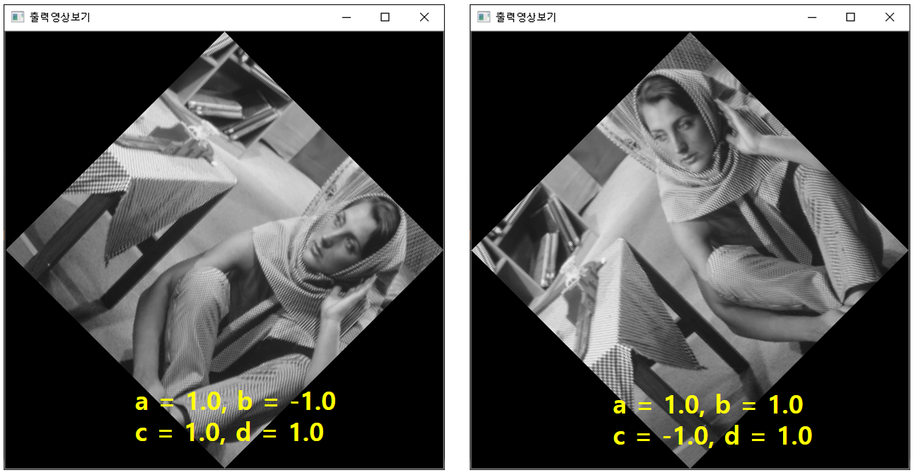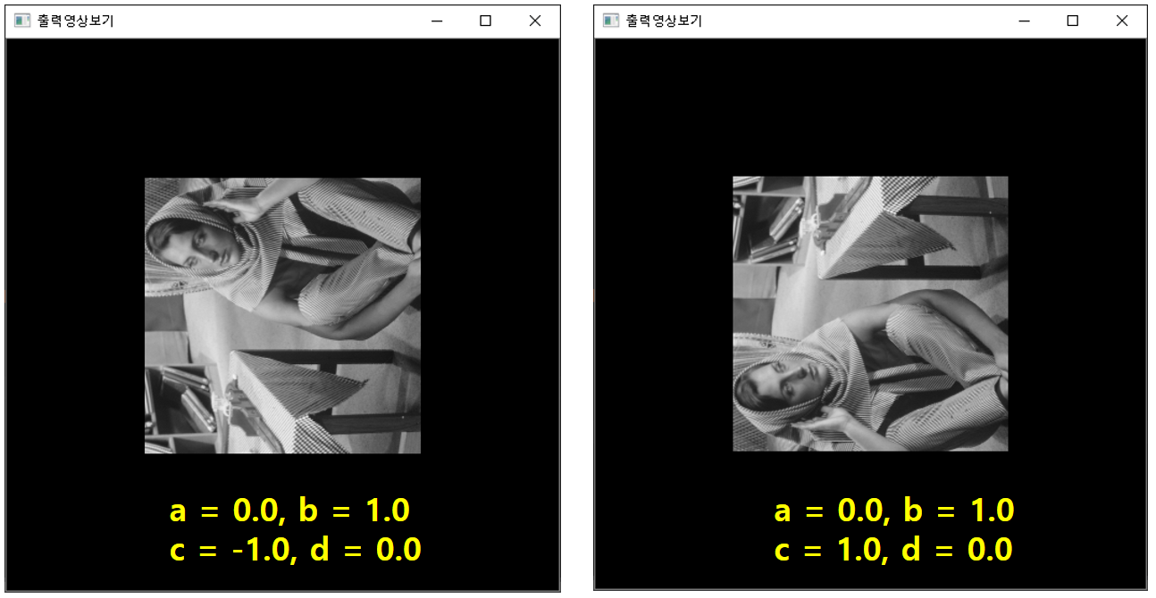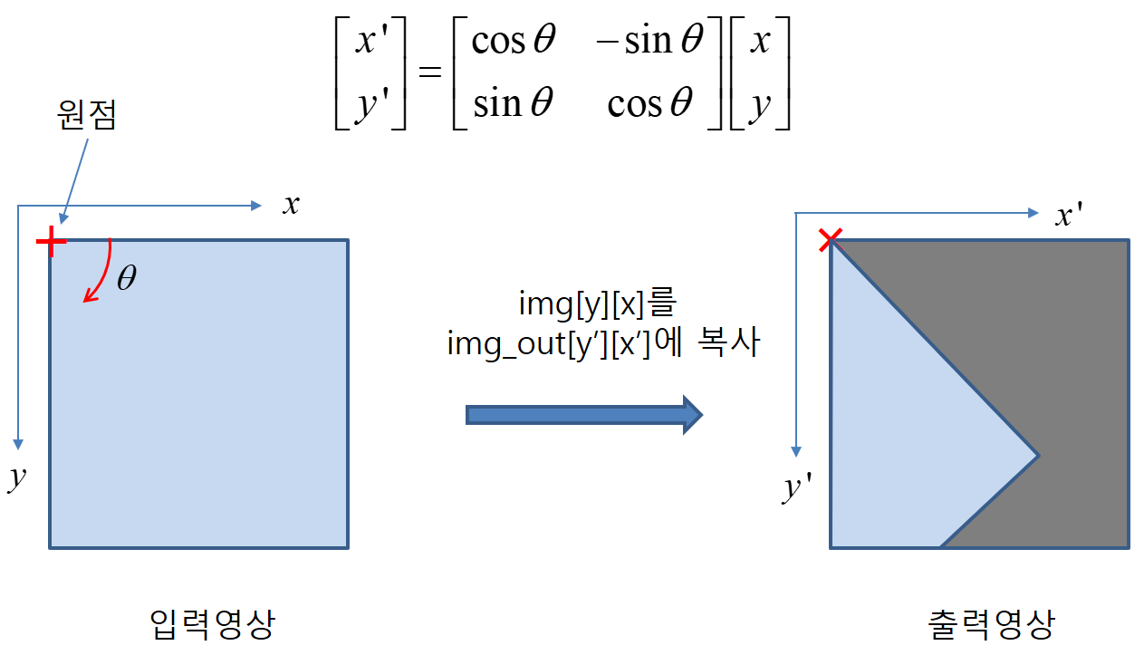 - 회전 변환 : 영상의 어떤 점을 중심으로 회전시키기