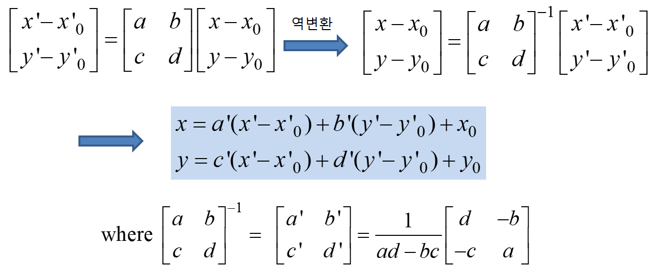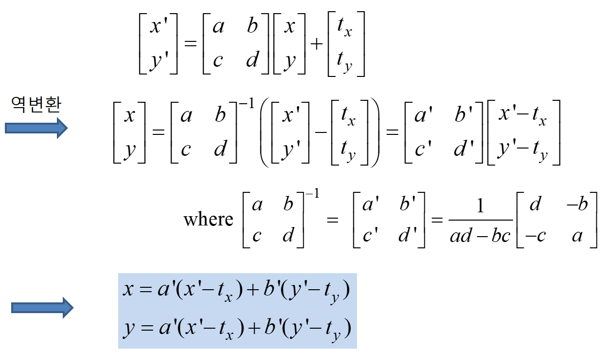 - 어파인 변환은 너무 많은 경우의 수를 포함하므로, 영상의 가운데를 중심으로 적용되는 경우만으로 제한