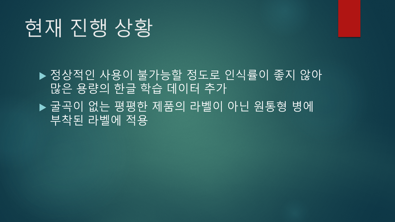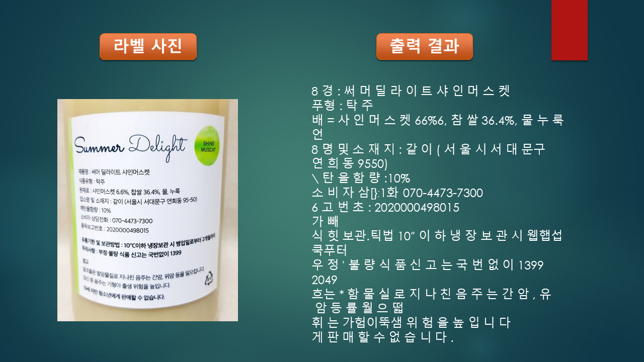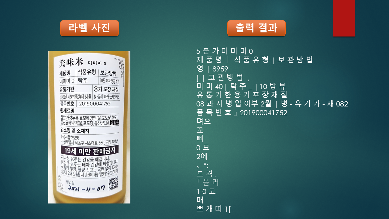 Personal Project/라벨의 제품 정보 추출 02 개발 중간 점검 (22.05.04) by Orangetasteboy 2023. 6. 27. 공유하기 게시글 관리 발자취 'Personal Project > 라벨의 제품 정보 추출' 카테고리의 다른 글 03 프로젝트 결과 및 고찰 (22.06.03) (0) 2023.06.27 01 프로젝트 소개 (22.04.06) (0) 2023.06.27 관련글 03 프로젝트 결과 및 고찰 (22.06.03) 01 프로젝트 소개 (22.04.06) 댓글