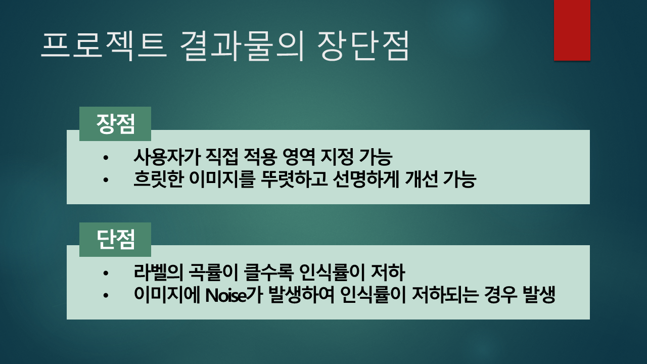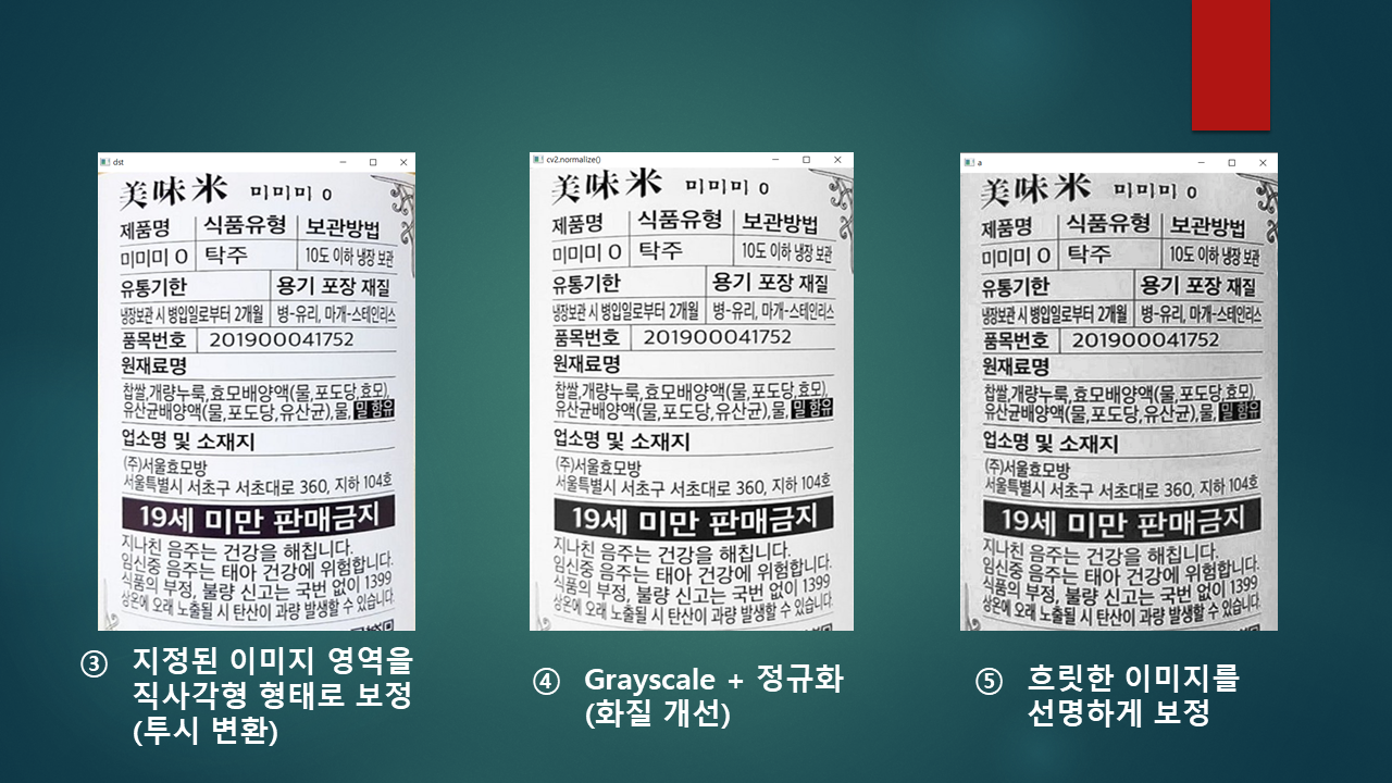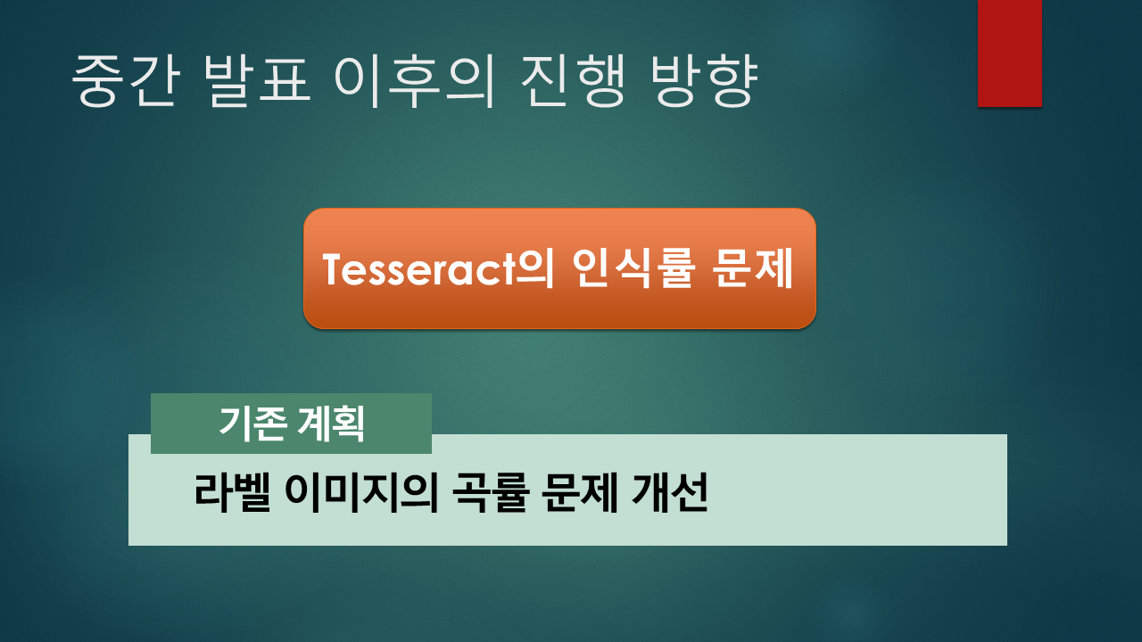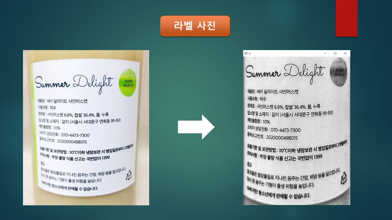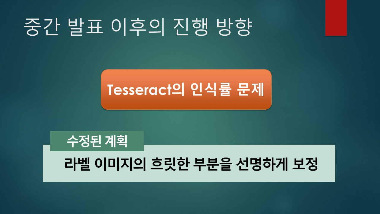 Personal Project/라벨의 제품 정보 추출 03 프로젝트 결과 및 고찰 (22.06.03) by Orangetasteboy 2023. 6. 27. 공유하기 게시글 관리 발자취 'Personal Project > 라벨의 제품 정보 추출' 카테고리의 다른 글 02 개발 중간 점검 (22.05.04) (0) 2023.06.27 01 프로젝트 소개 (22.04.06) (0) 2023.06.27 관련글 02 개발 중간 점검 (22.05.04) 01 프로젝트 소개 (22.04.06) 댓글