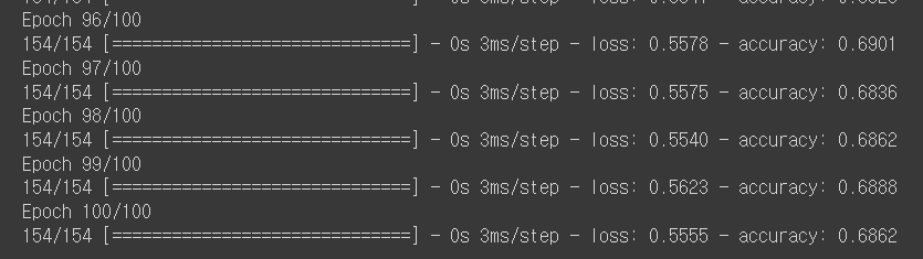 100번을 반복한 현재, 약 68.62%의 정확도를 보임.