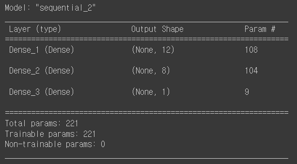 Output Shape : 각 층에 몇 개의 출력이 발생하는지 표시