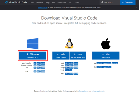 Visual Studio Code 공식 홈페이지에서 설치파일을 받아 설치를 진행한다.