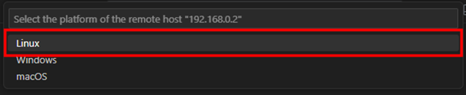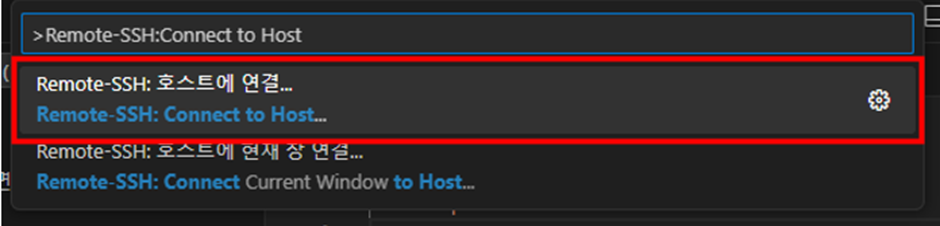 F1 키를 누르고 “Remote-SSH:Connect to Host”를 입력하여 선택한다.