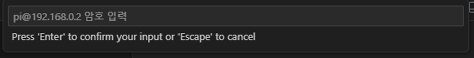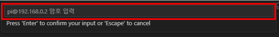 “SSH 연결 명령 입력” 창에 “pi@[연동할 라즈베리 파이의 IP]”를 입력하고 Enter 키를 누른다.