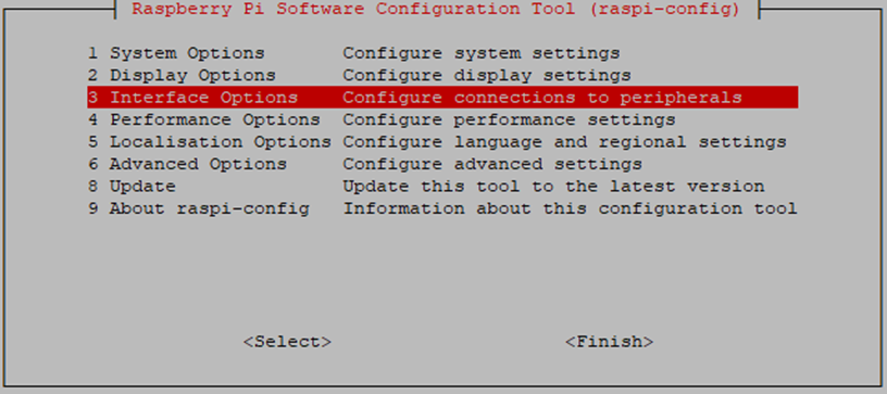 키보드 화살표 키로 “3 Interface Option”을 선택하고 Enter 키를 누른다.