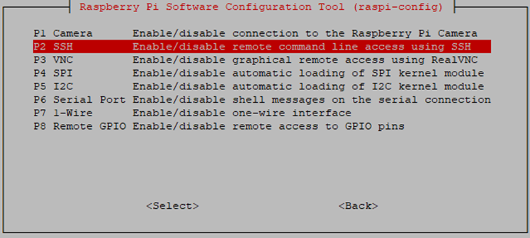 키보드 화살표 키로 “P2 SSH”를 선택하고 Enter 키를 누른다.