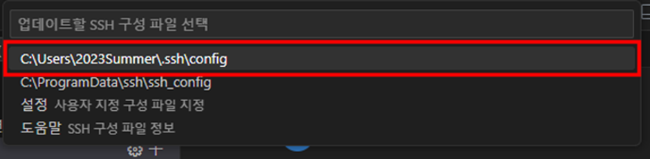 아래의 C:\Users\[사용자계정]\.ssh\config를 선택하여 호스트를 추가한다.