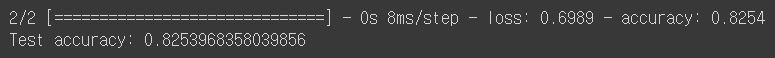 따로 저장해 둔 테스트셋에 이 모델을 적용하면 정확도는 82.53%