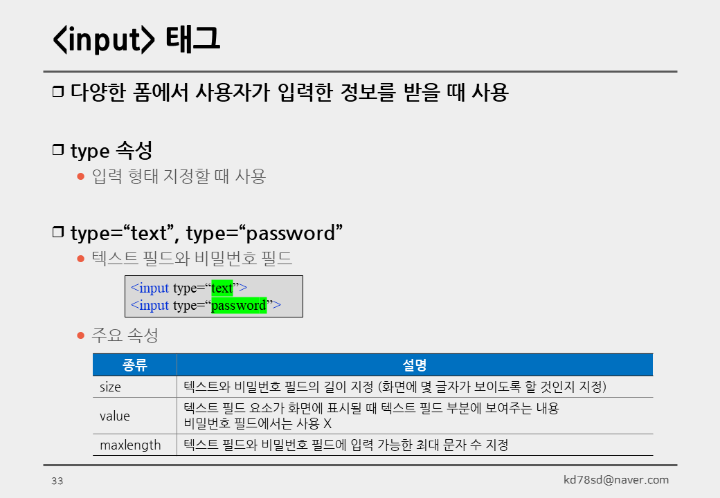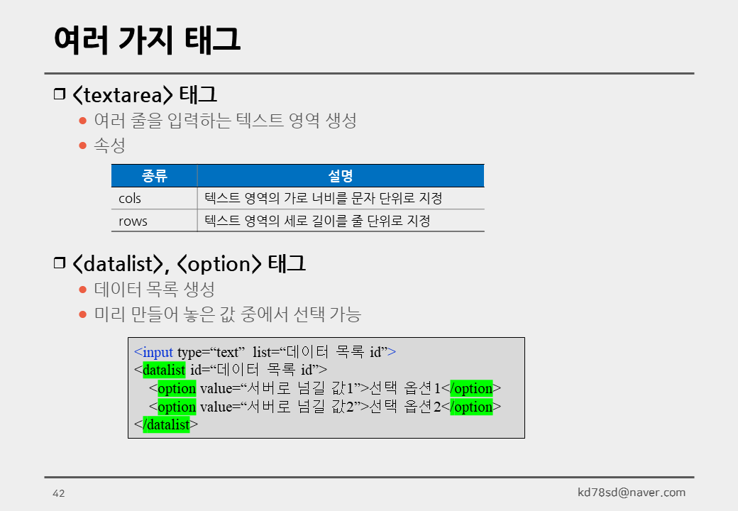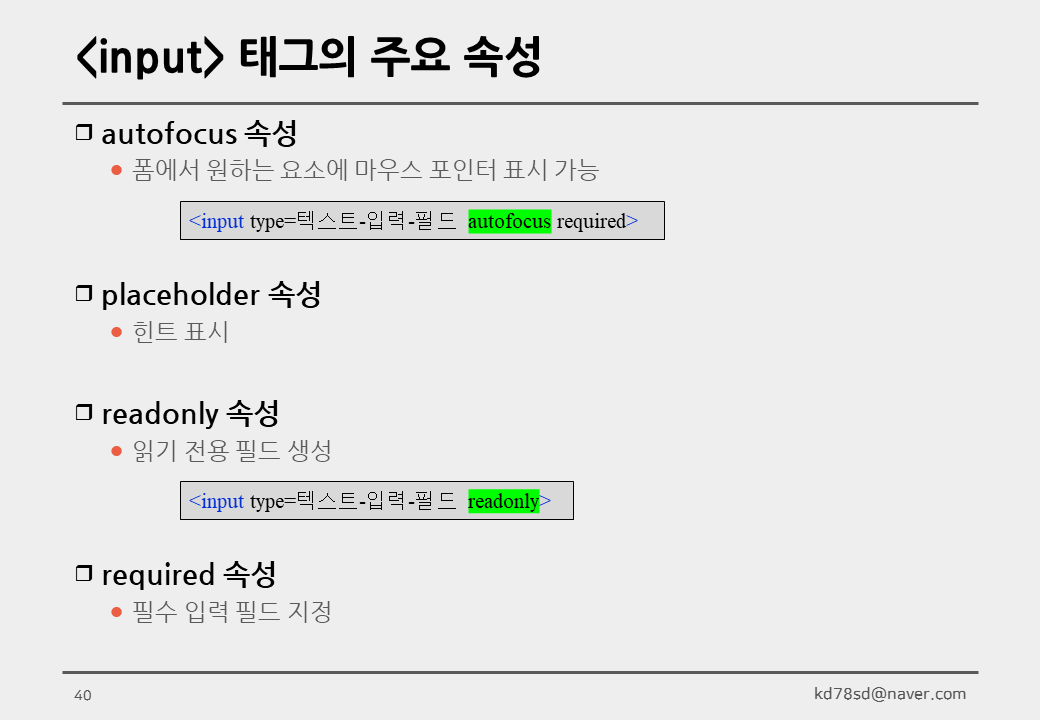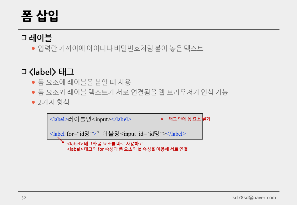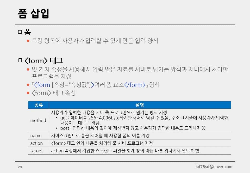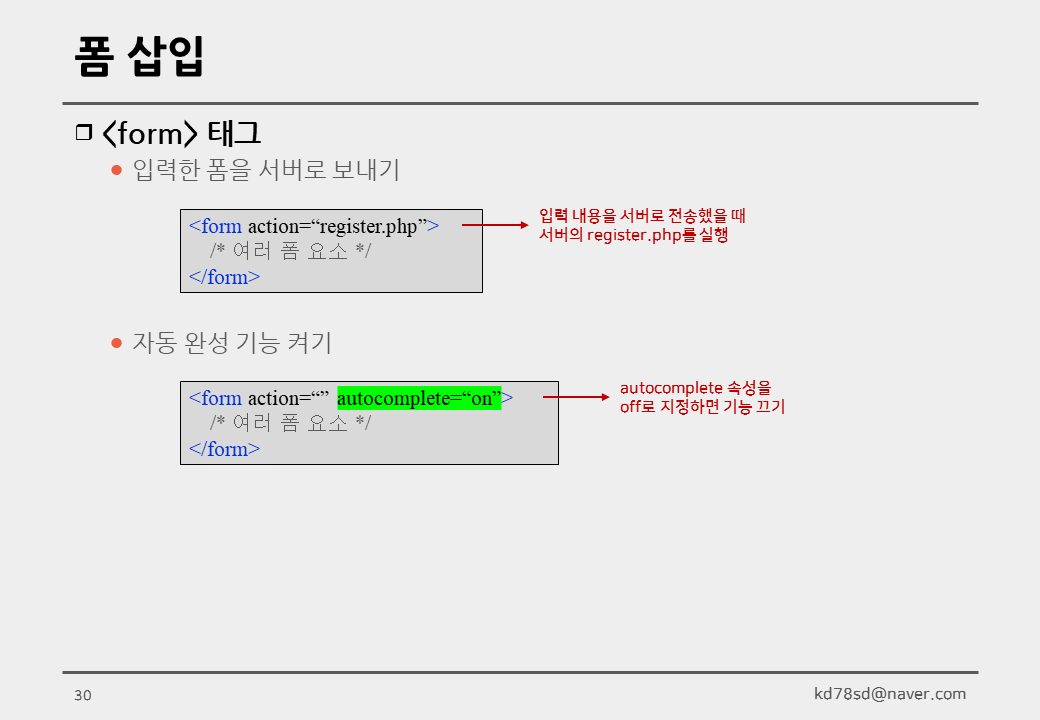 Web Programming/HTML 02 입력 양식 작성 (23.01.03) by Orangetasteboy 2023. 1. 3. 공유하기 게시글 관리 발자취 'Web Programming > HTML' 카테고리의 다른 글 01 HTML 기본 문서 생성, 웹 문서에 내용 입력 (23.01.03) (0) 2023.01.03 관련글 01 HTML 기본 문서 생성, 웹 문서에 내용 입력 (23.01.03) 댓글