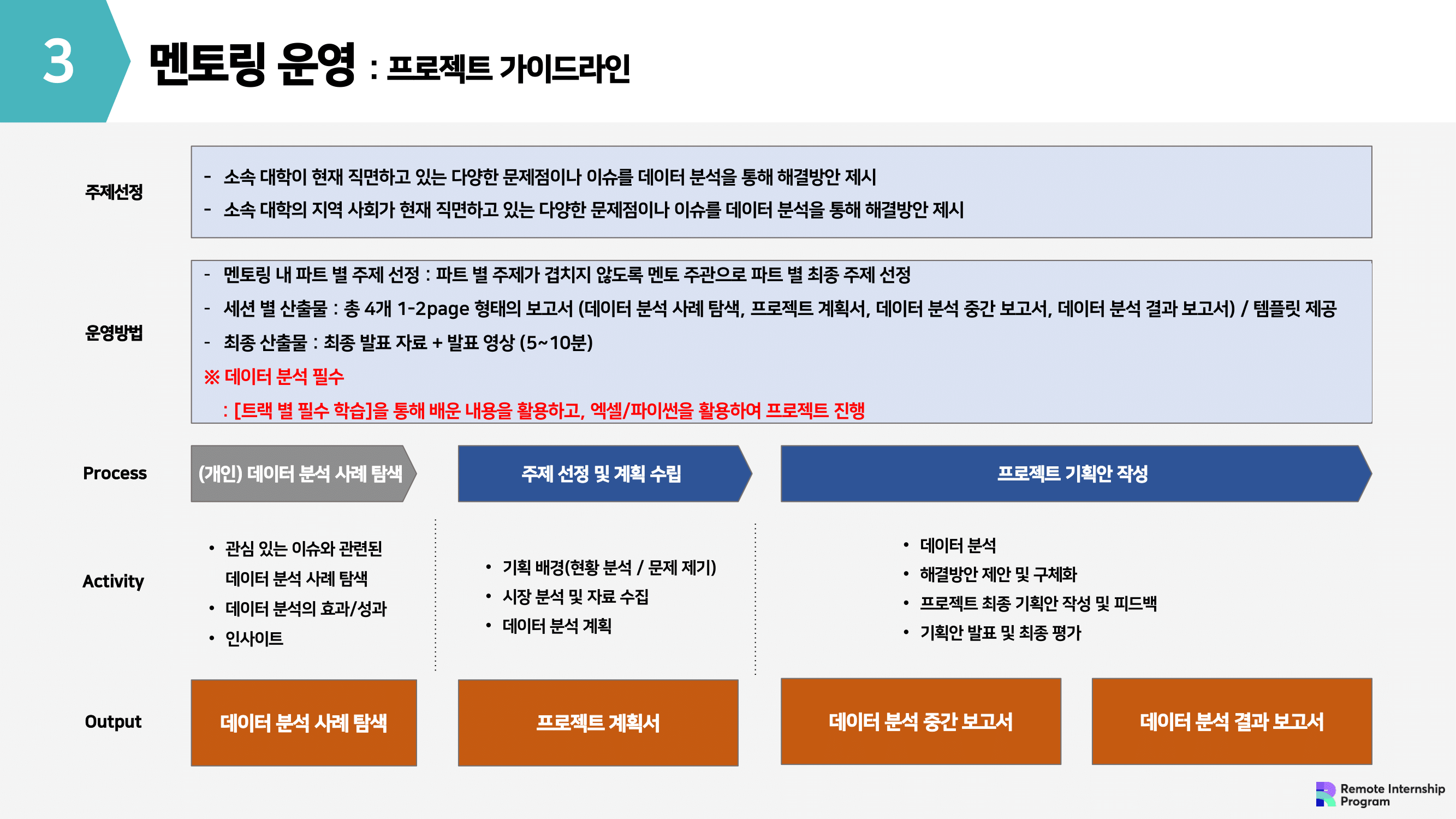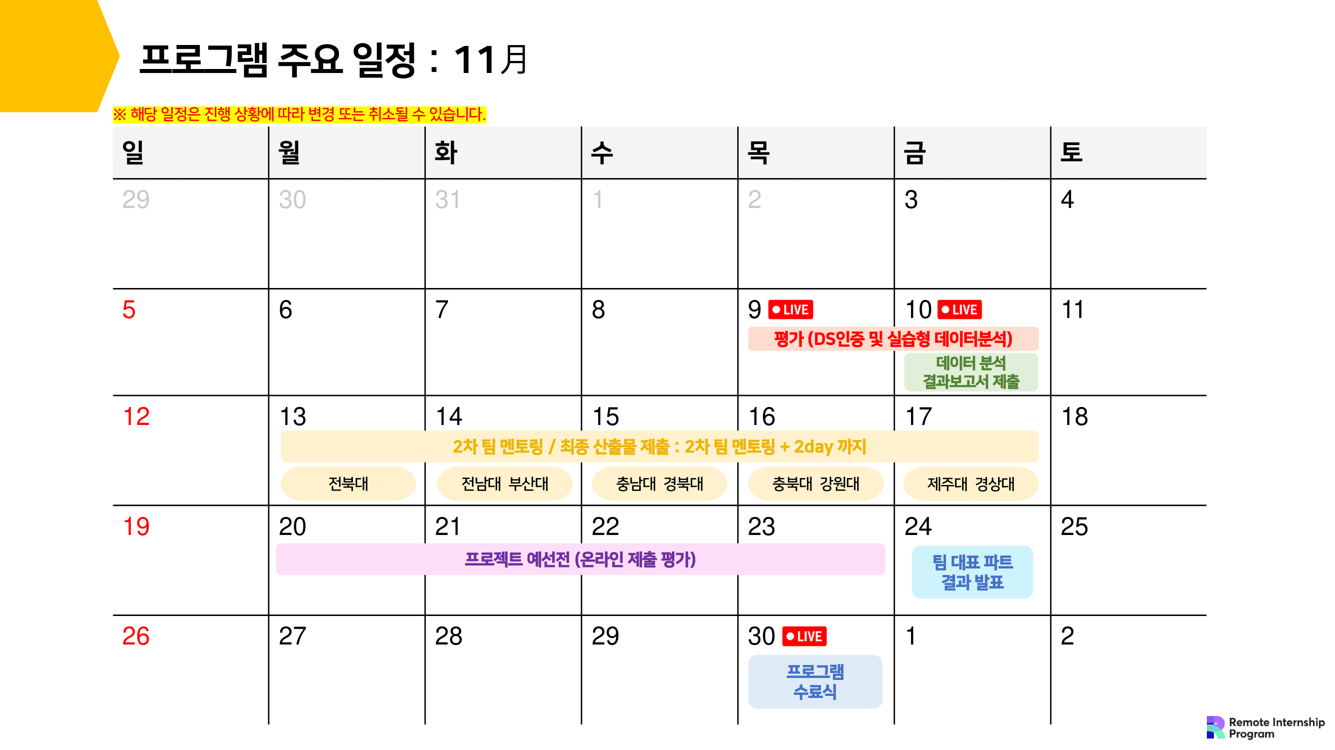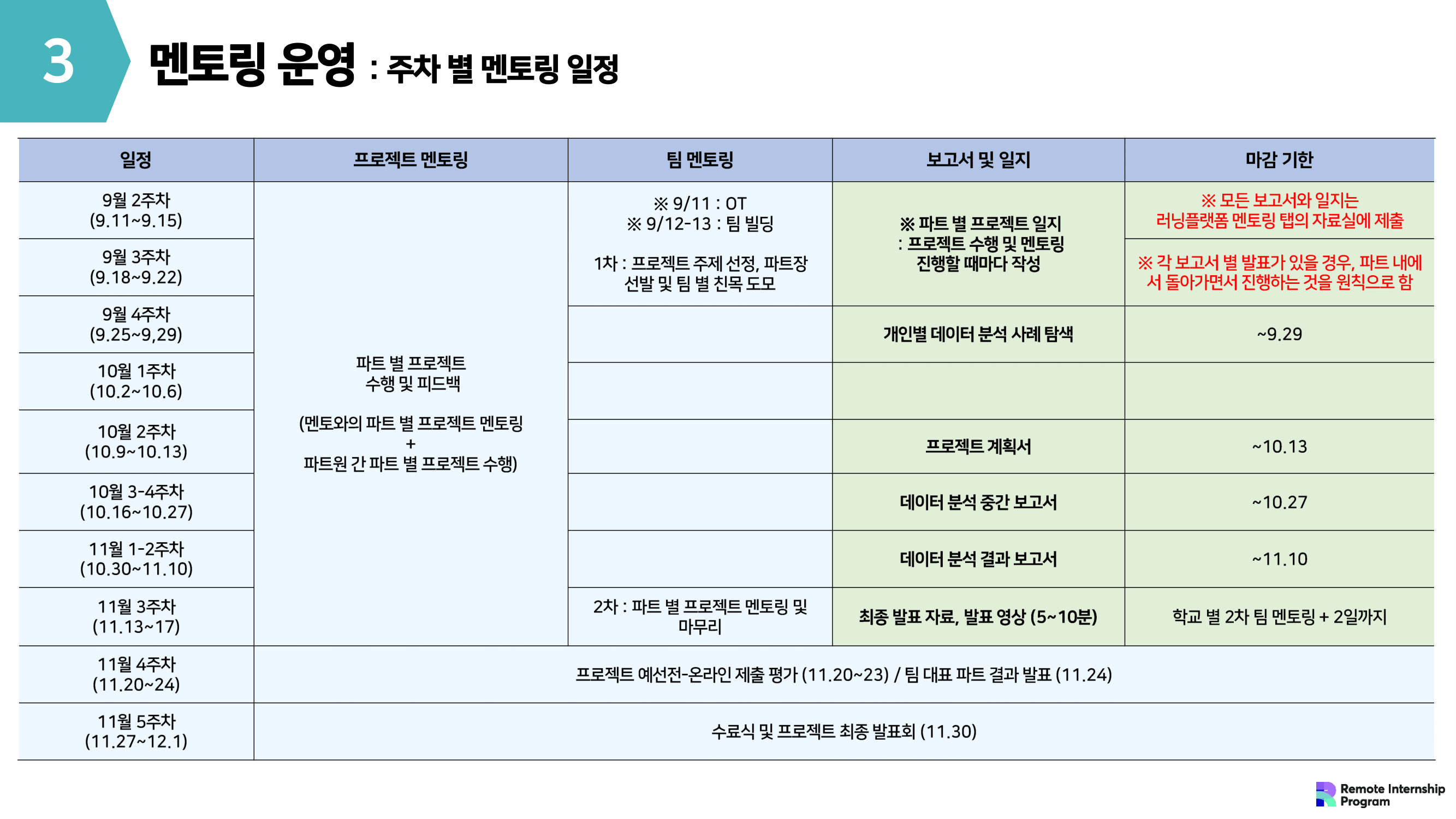 그러던 중 데이터 분석 경진대회를 함께 나간 후배 2명이 저번 학기에 했었던 리모트 인턴십 프로그램에서 새로운 기수를 모집한다는 소식을 보았다.