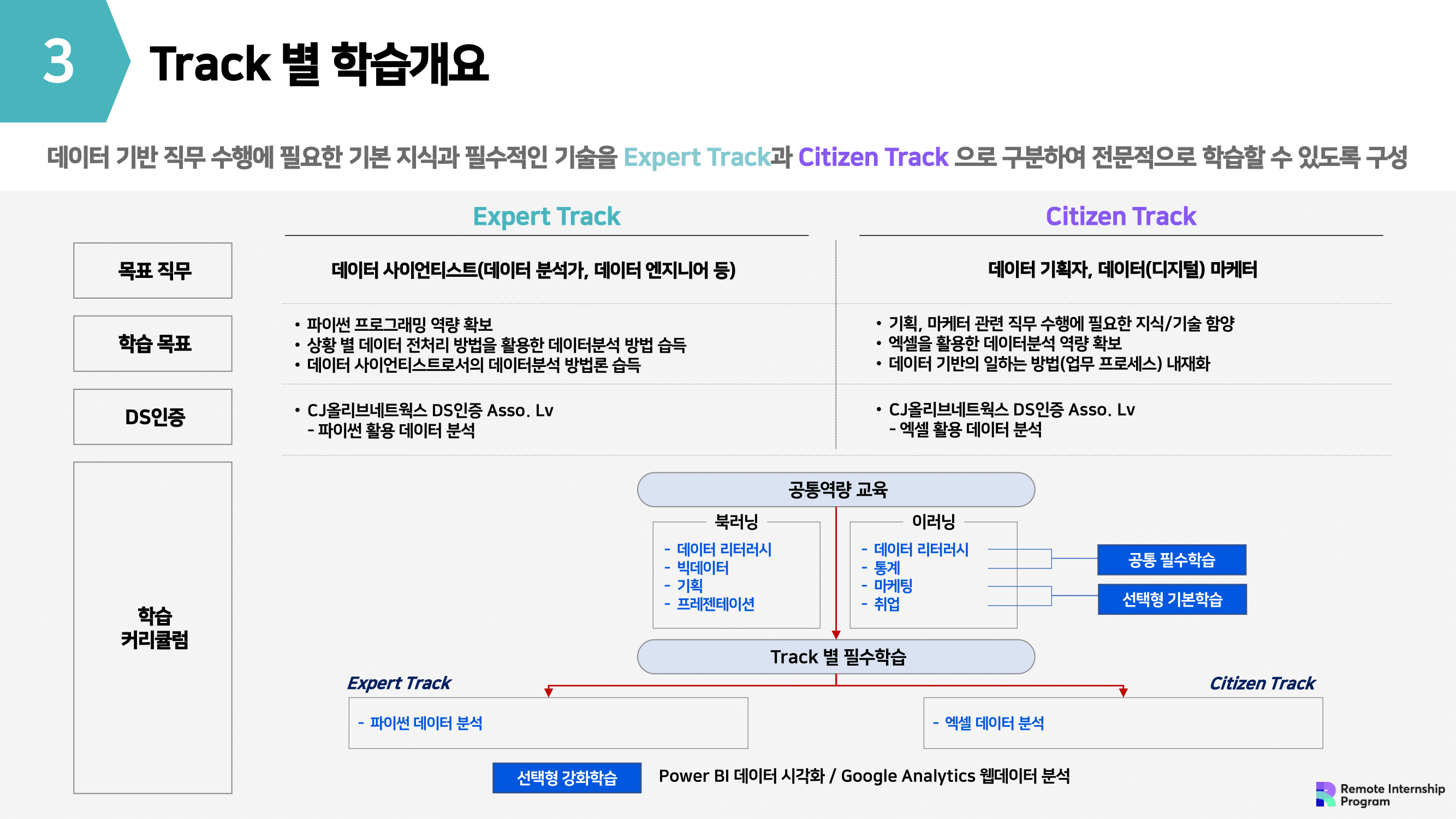 - 비전공자도 Citizen Track에 참여하여 Tool기반 데이터기획, 마케팅 역량을 강화
