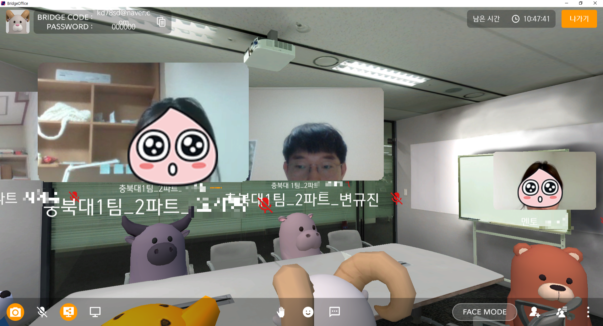 CJ의 비대면 회의 프로그램에서 우리끼리 회의를 하거나 멘토님과 회의를 진행하기도 하였다.