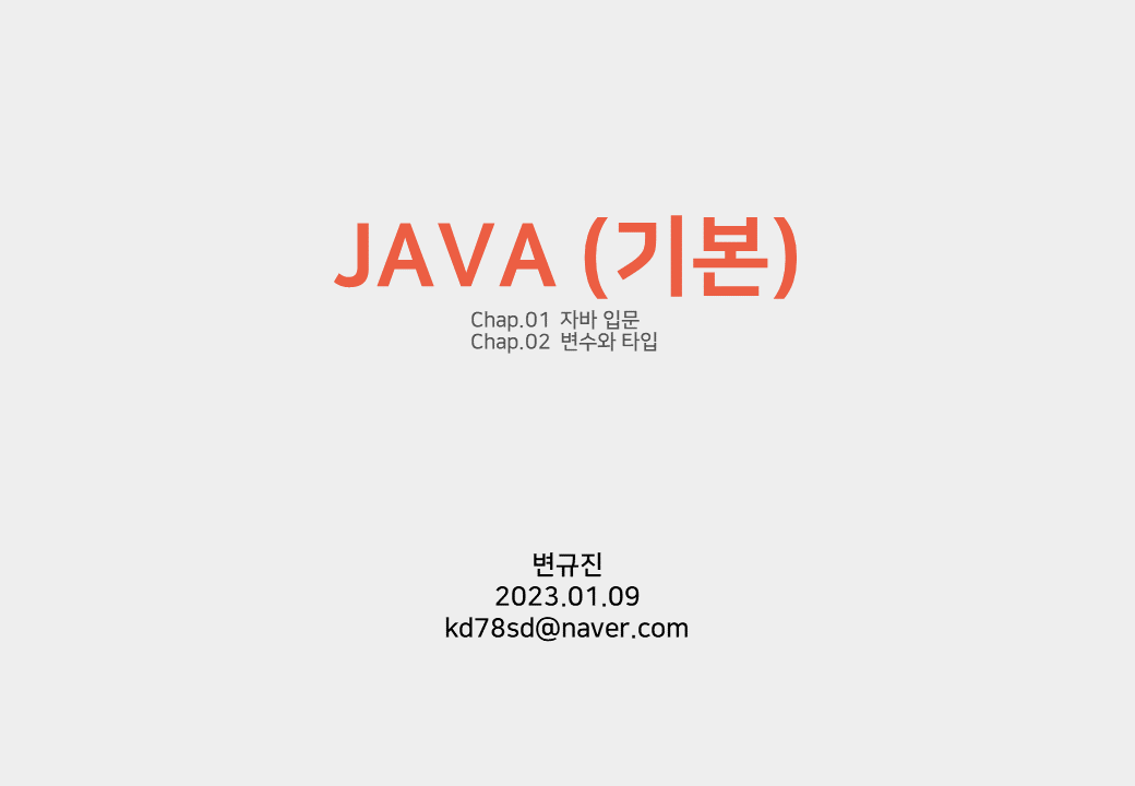Language & Tool/JAVA (기본) 01 자바 입문, 변수와 타입 (23.01.09) by Orangetasteboy 2023. 1. 10. 공유하기 게시글 관리 발자취 'Language & Tool > JAVA (기본)' 카테고리의 다른 글 03 상속, 인터페이스, 중첩 클래스와 중첩 인터페이스, 예외 처리 (23.01.14) (0) 2023.01.14 02 참조 타입, 클래스 (23.01.12) (0) 2023.01.12 관련글 03 상속, 인터페이스, 중첩 클래스와 중첩 인터페이스, 예외 처리 (23.01.14) 02 참조 타입, 클래스 (23.01.12) 댓글