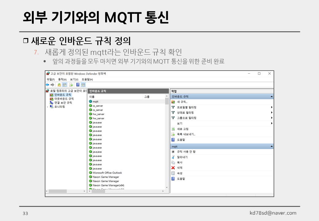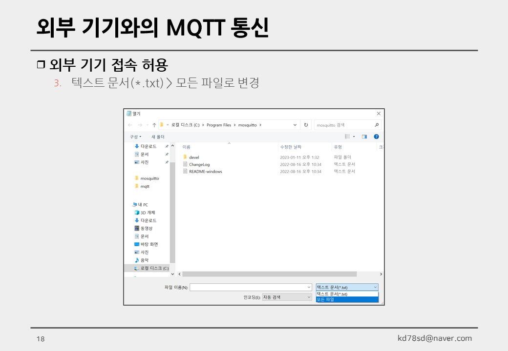 | 01 MQTT 서버 구축 (Linux 환경) (23.01.04) (2) | 2023.01.04 |