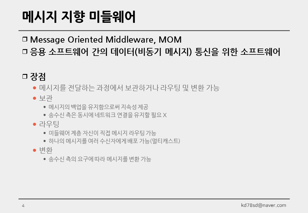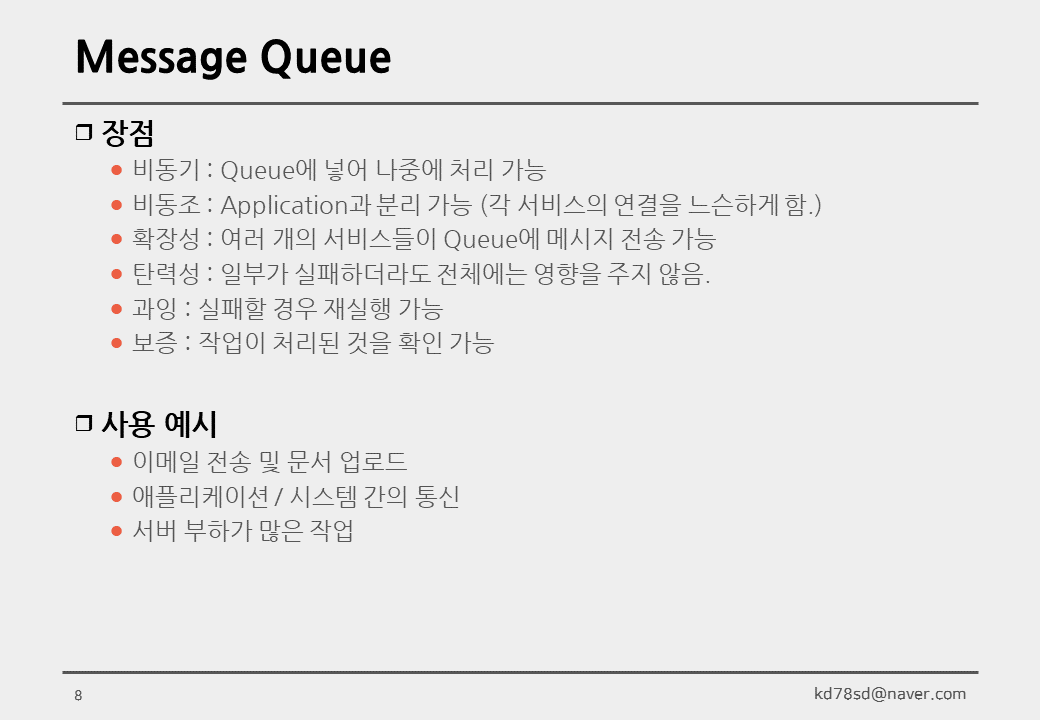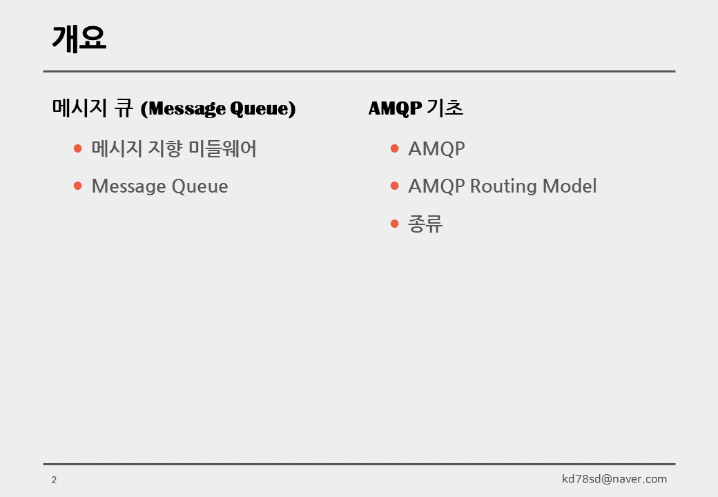 Protocol/AMQP 01 메시지 큐 (Message Queue) (23.01.29) by Orangetasteboy 2023. 1. 29. 공유하기 게시글 관리 발자취 'Protocol > AMQP' 카테고리의 다른 글 02 AMQP 기초 (23.01.29) (2) 2023.01.29 관련글 02 AMQP 기초 (23.01.29) 댓글