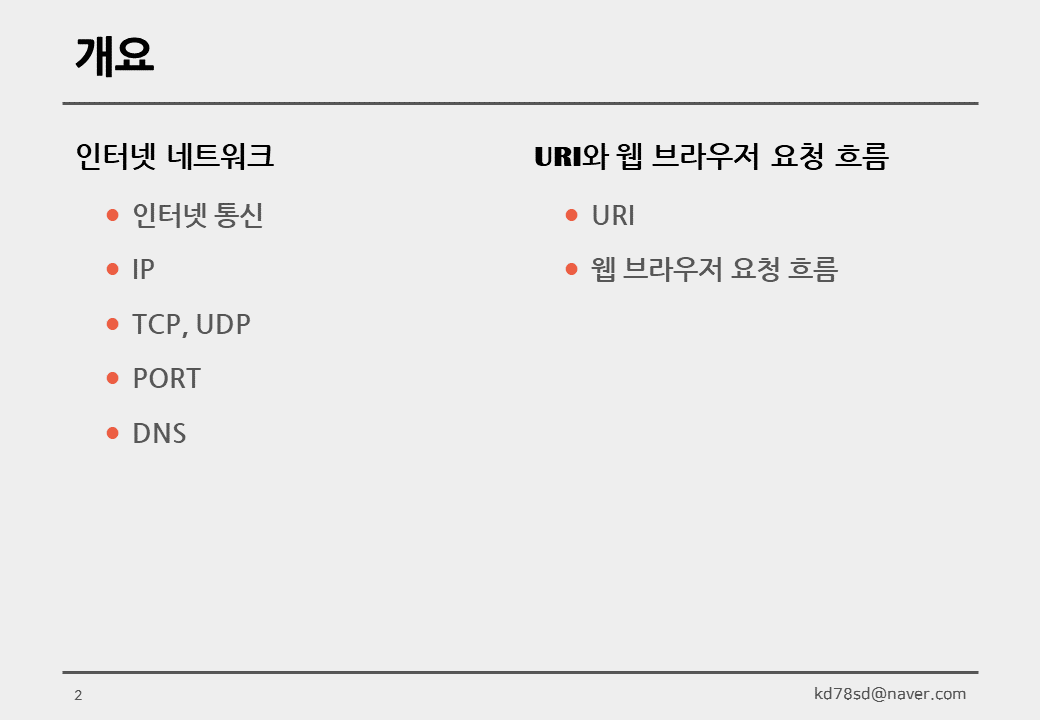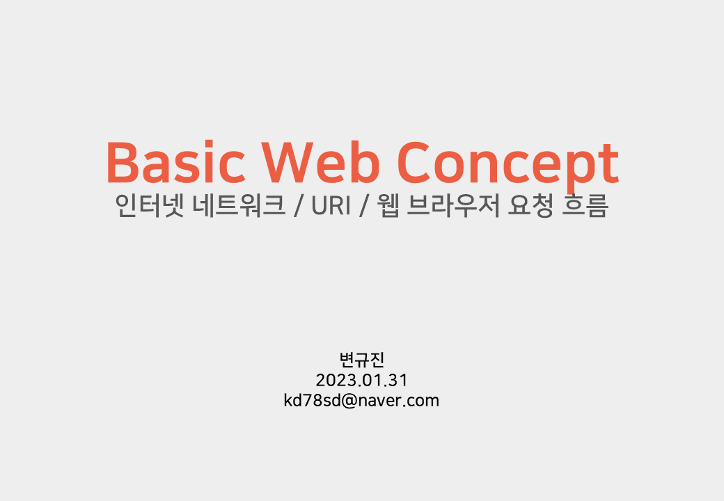 Web Programming/Basic Web Concept 01 인터넷 네트워크 (23.01.31) by Orangetasteboy 2023. 1. 31. 공유하기 게시글 관리 발자취 'Web Programming > Basic Web Concept' 카테고리의 다른 글 02 URI와 웹 브라우저 요청 흐름 (23.01.31) (0) 2023.01.31 관련글 02 URI와 웹 브라우저 요청 흐름 (23.01.31) 댓글