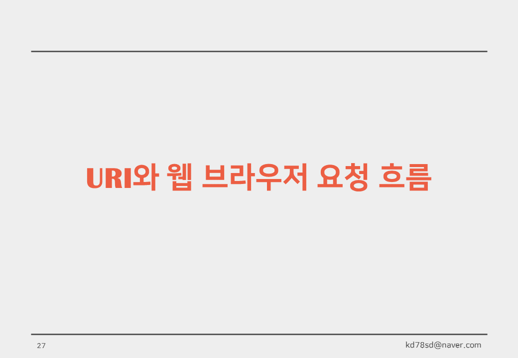 Web Programming/Basic Web Concept 02 URI와 웹 브라우저 요청 흐름 (23.01.31) by Orangetasteboy 2023. 1. 31. 공유하기 게시글 관리 발자취 'Web Programming > Basic Web Concept' 카테고리의 다른 글 01 인터넷 네트워크 (23.01.31) (0) 2023.01.31 관련글 01 인터넷 네트워크 (23.01.31) 댓글