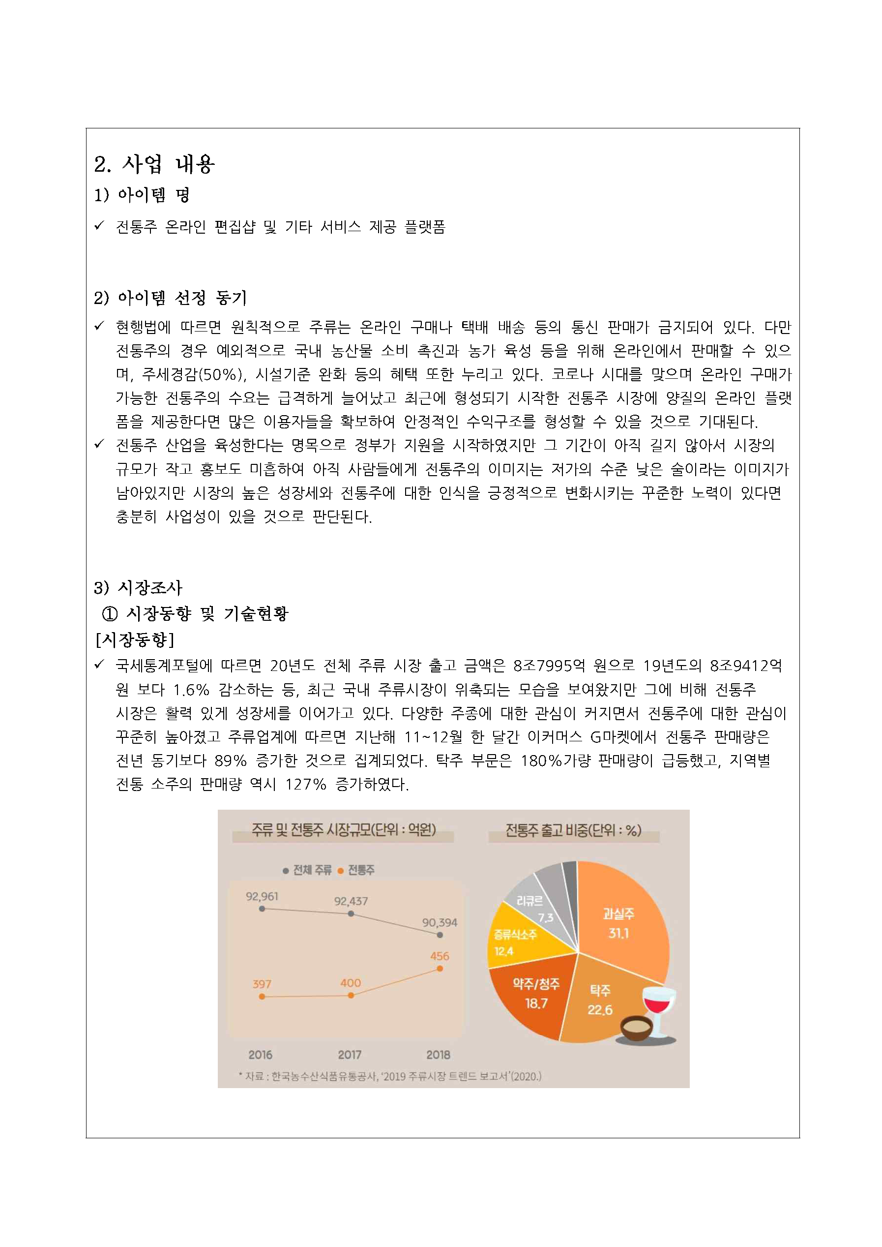 그들을 설득한 창업 아이디어는 요즘 어마어마하게 성장하고 있고 인기가 많은 전통주 관련 아이디어였다. 양조장과 브루어리를 열기 위해 공부하고 연구하러 다니는 고등학교 동창인 친구에게 도움도 받을 수 있고, 회사에서 산업기능요원을 하면서 약 1년 동안은 그 친구에게 어깨 너머로 배우며 여러 전통주 보틀샵에 가보고 구매하여 시음도 하고, 박람회 등도 가보았기 때문에 어느 정도 자신이 있었다.