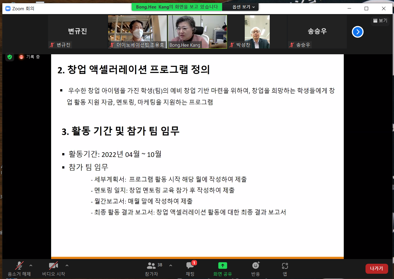 창업 액셀러레이션 프로그램의 팀 선발이 끝나고 사업단에서는 앞으로의 프로그램 진행 설명을 위해 비대면으로 OT를 진행하였다.