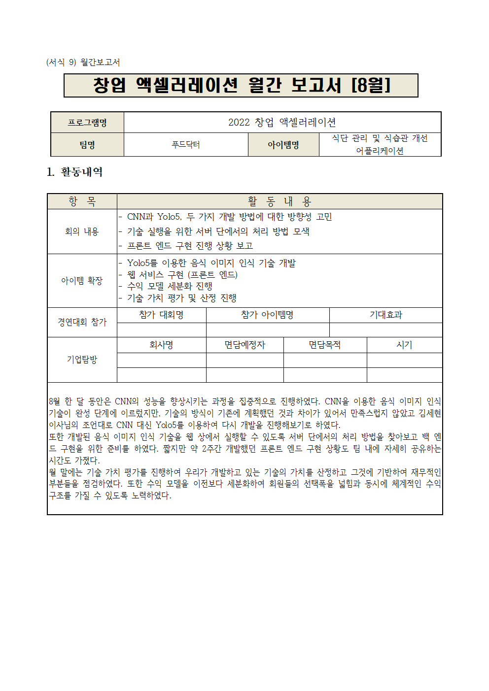 팀이 완전히 자리를 잡기 시작하면서 9월에 있을 2022 ICT 기반 기술창업 모의 IR 경진대회를 대비할 여력이 생겼고, 이제 비로소 팀장인 나의 역량을 팀원들과 외부 사람들에게 제대로 어필할 수 있겠다는 생각이 들었다.