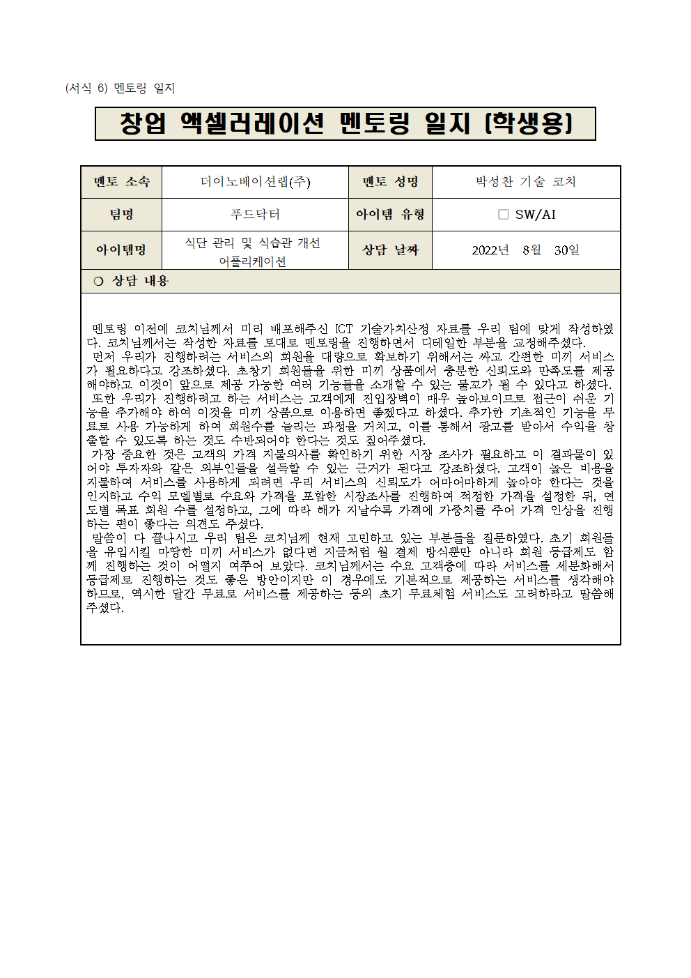우리 아이템을 최종적으로 점검받는다는 마음가짐으로 열심히 멘토링에 임했다.