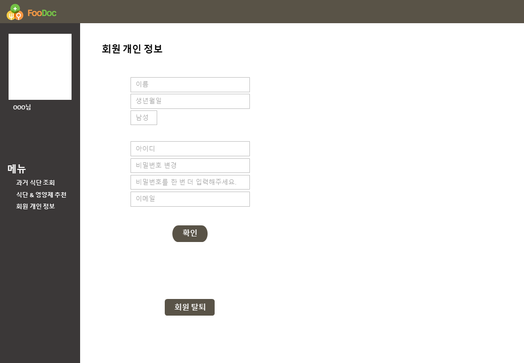 [메뉴 - 회원 개인 정보 화면]