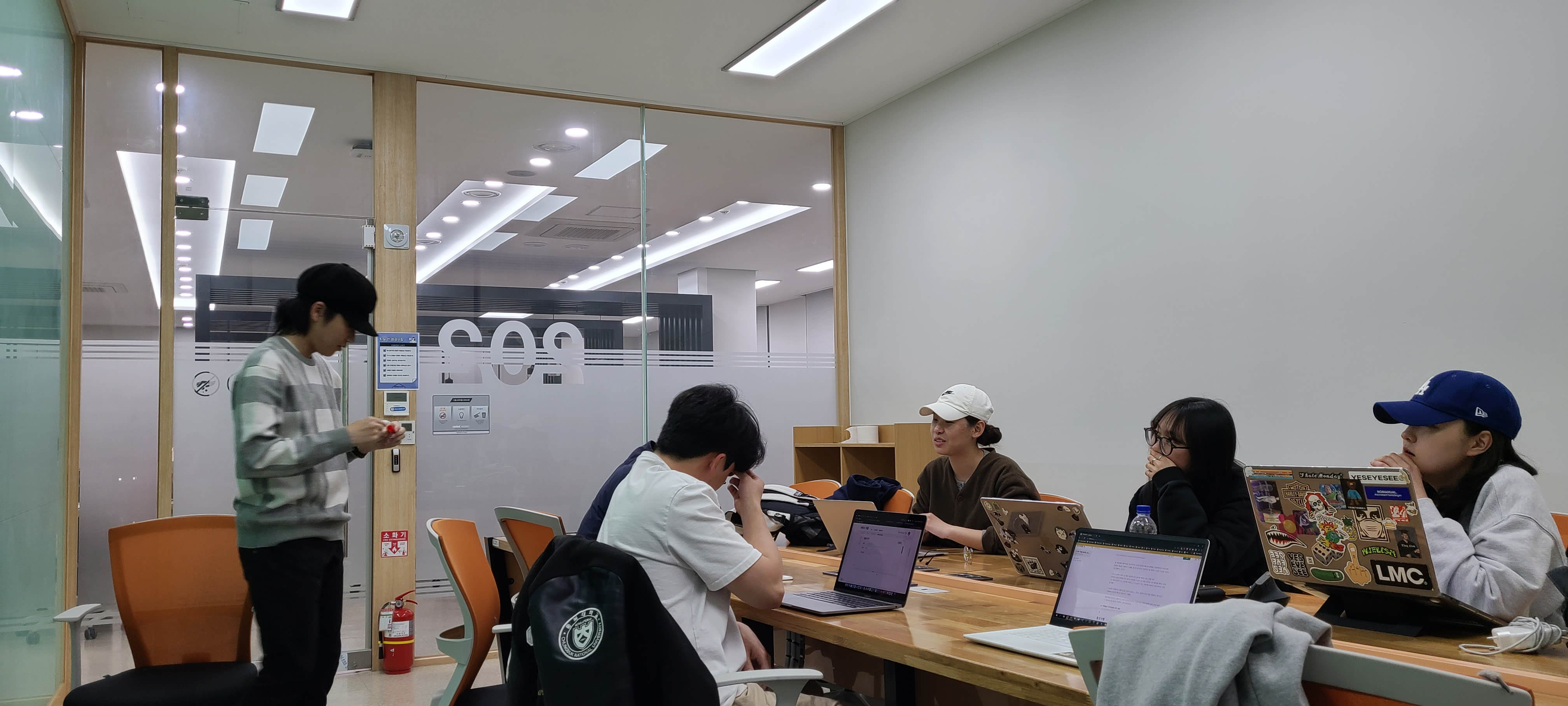 매주 금요일마다 모든 팀원들이 모여서 함께 개발을 진행하면서 각 부서별로 소통하고 진행상황을 공유하기로 함.