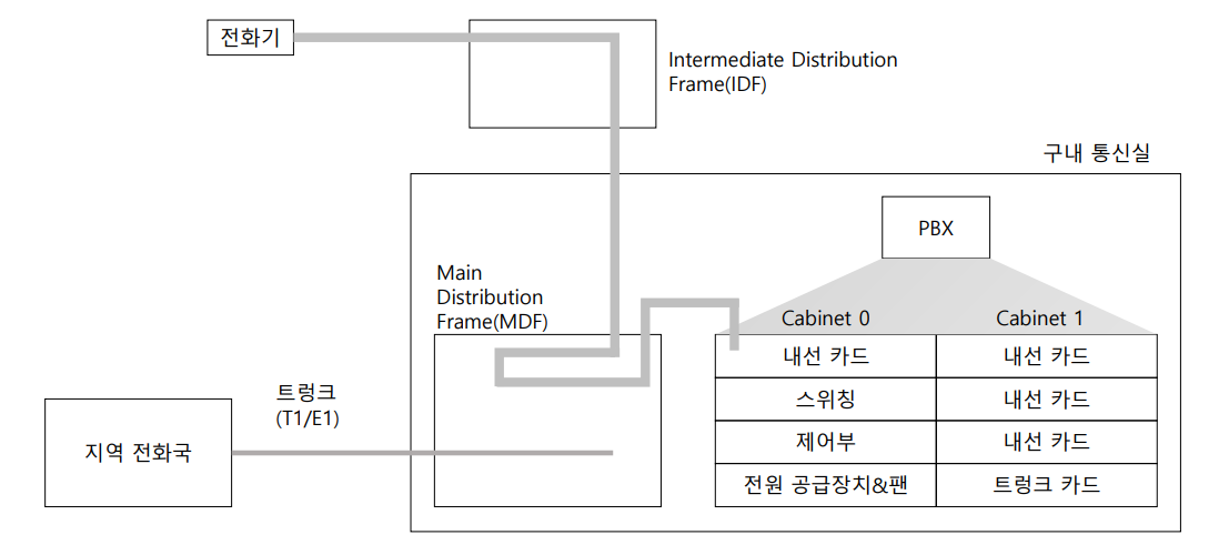 - 내선 카드의 수에 따라 PBX의 크기 결정