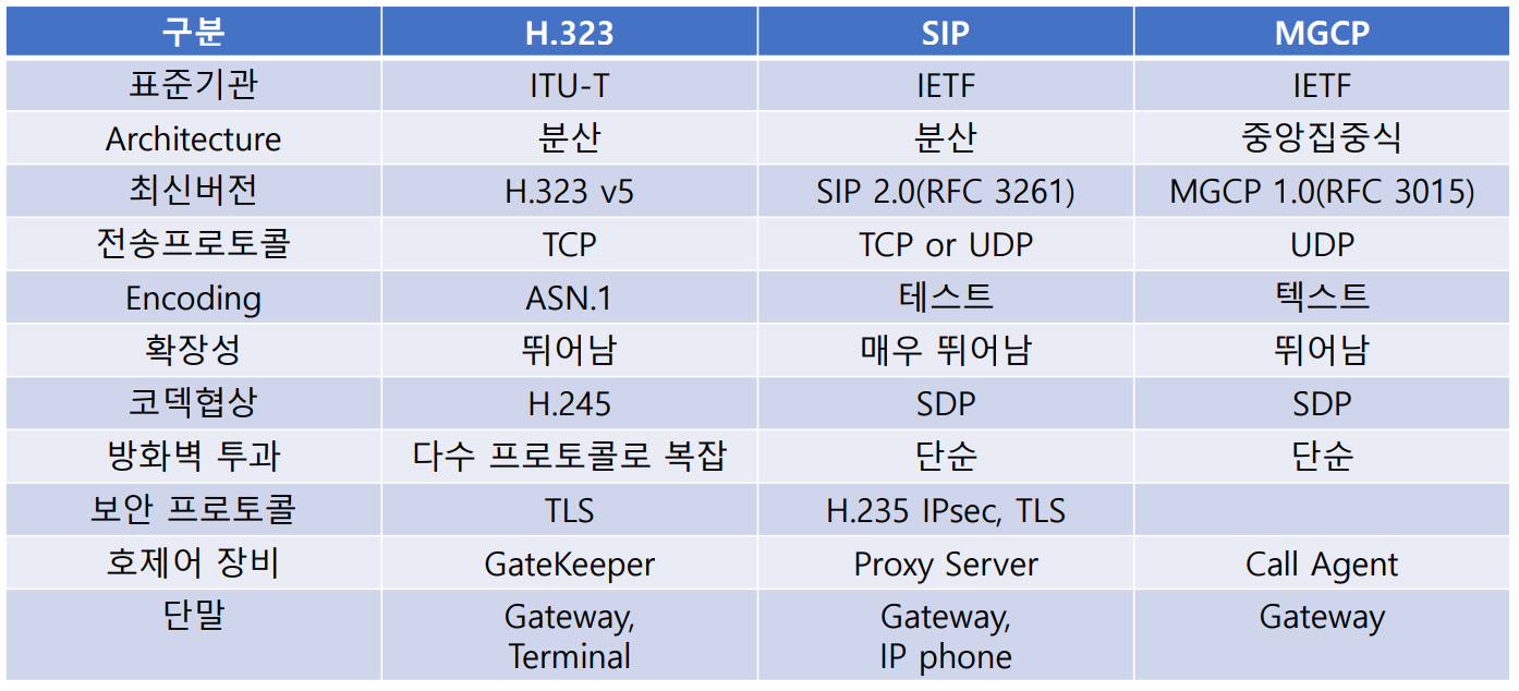 - PSTN 네트워크의 아키텍쳐와 유사 (시그널링 과정과 메시지)