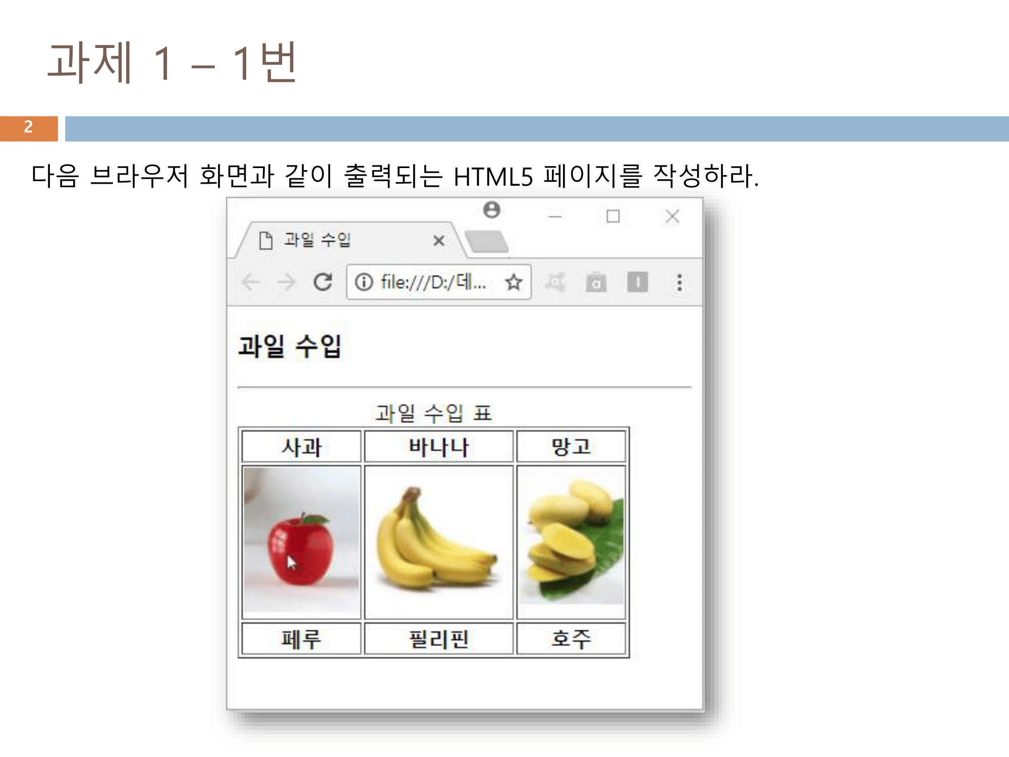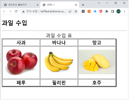 <caption>과일 수입 표</caption> <!-- 표 제목 설정 -->