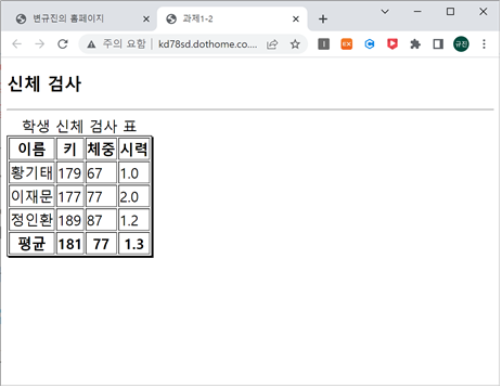 <caption>학생 신체 검사 표</caption> <!-- 표 제목 설정 -->